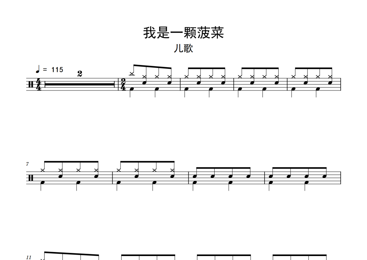 《我是一颗菠菜》是儿歌精选演唱的一首歌曲,拍号为4/4拍,歌曲速度为每分钟115拍,这份鼓谱共有两张高清图谱,图谱由 @老虎不说谎 编配上传,图谱使用五线谱编配,使用这份我是一颗菠菜架子鼓谱,你将能够轻松地敲打出这首儿歌精选的我是一颗菠菜,快来尝试吧。