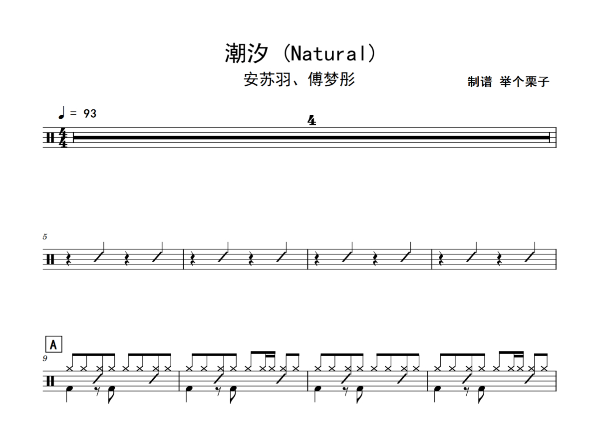 《潮汐》是傅梦彤演唱的一首歌曲,拍号为4/4拍,歌曲速度为每分钟93拍,这份鼓谱共有两张高清图谱,图谱由 @老虎不说谎 编配上传,图谱使用五线谱编配,使用这份潮汐架子鼓谱,你将能够轻松地敲打出这首傅梦彤的潮汐,快来尝试吧。
