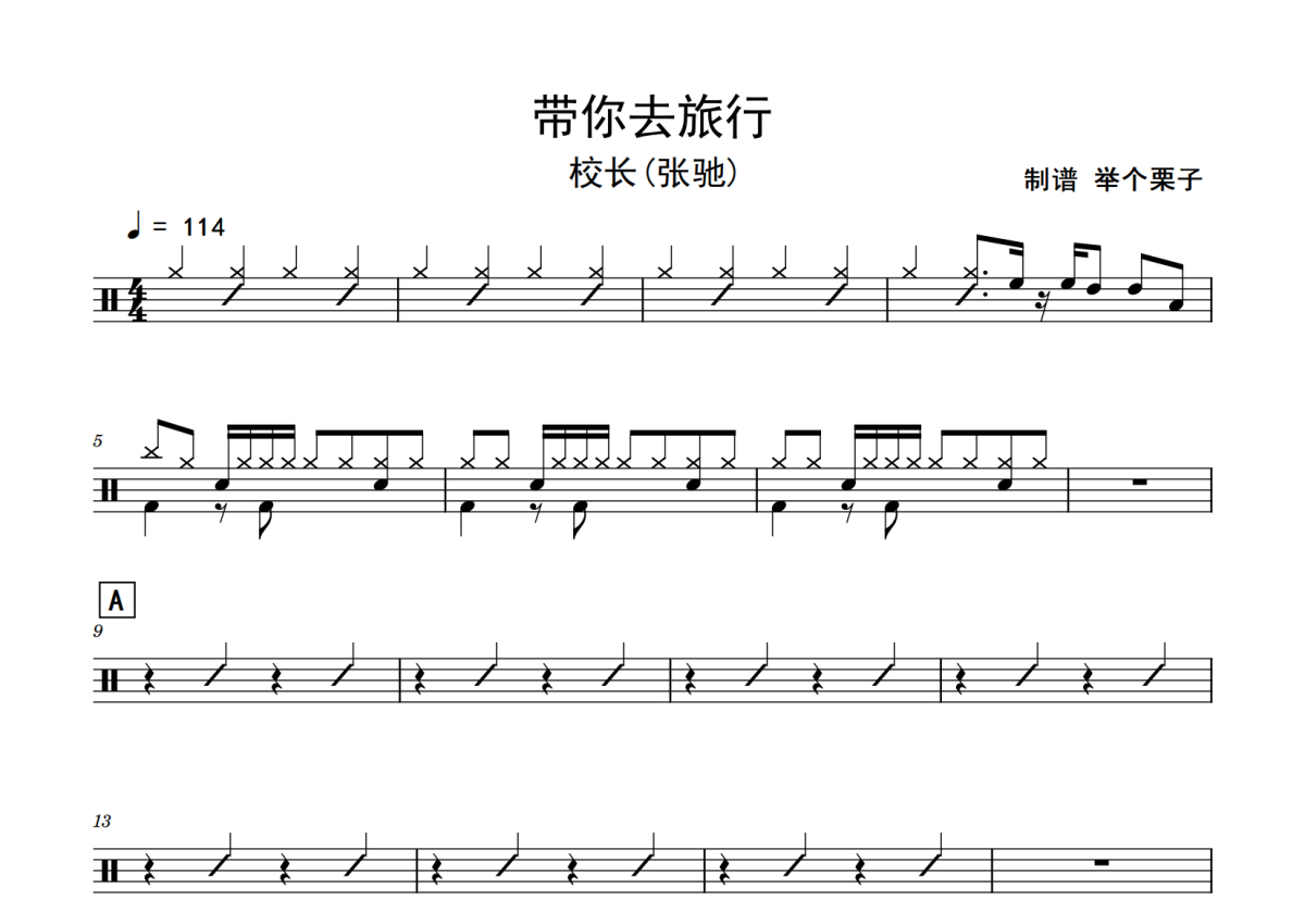 校长《带你去旅行》鼓谱 - 架子鼓谱