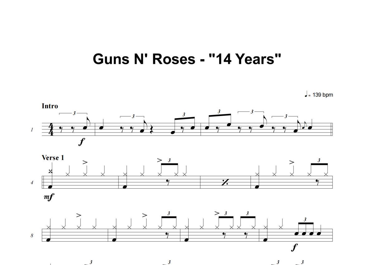 Guns N' Roses《14 Years》鼓谱 - 架子鼓谱