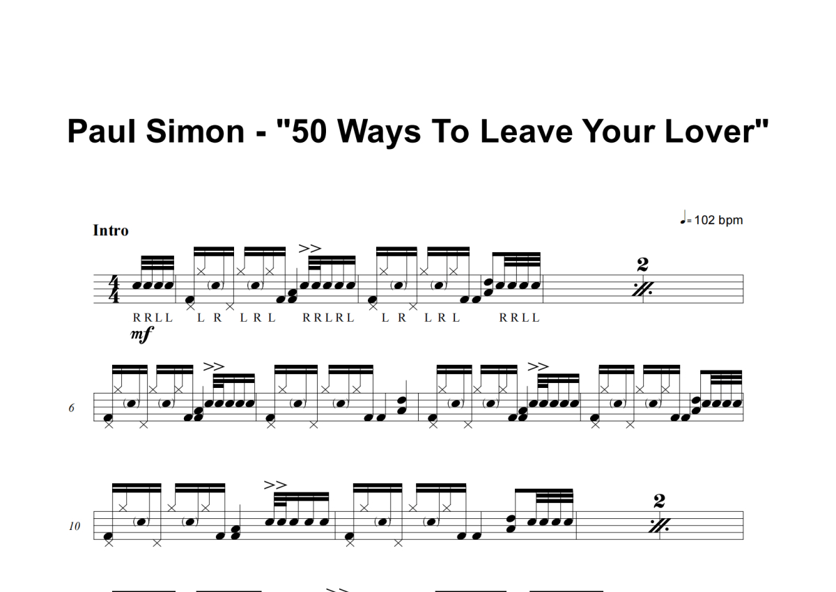 Paul Simon《50 Ways to Leave Your Lover》鼓谱 - 架子鼓谱