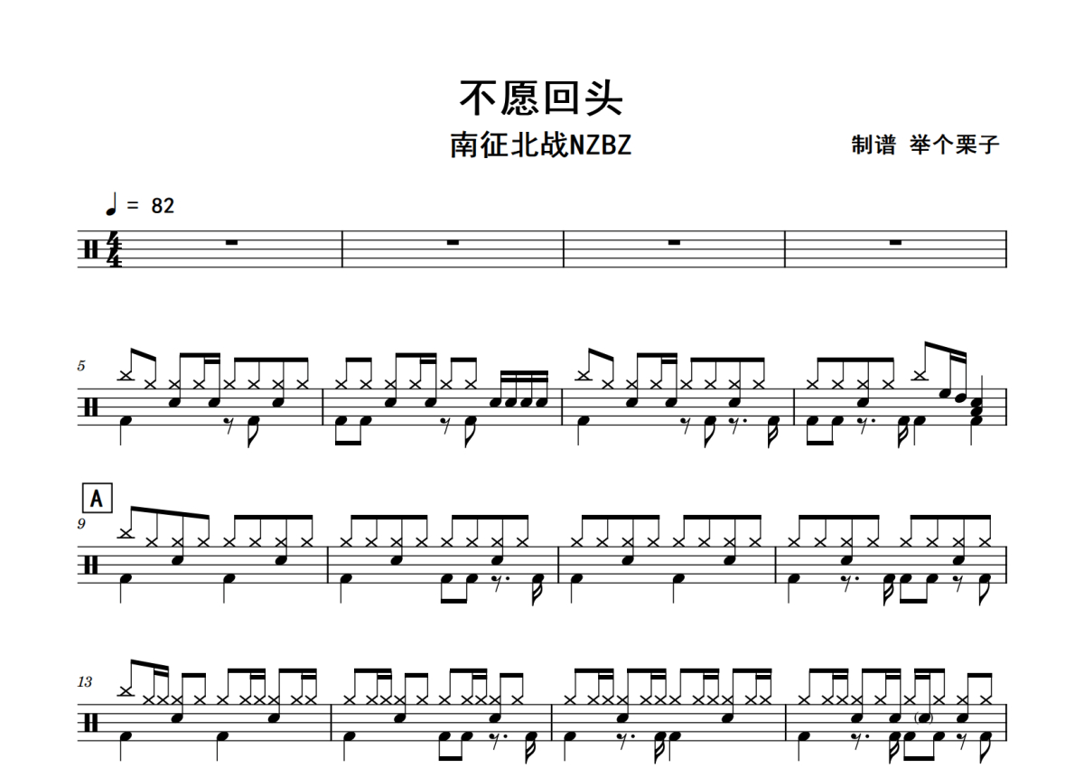 南征北战NZBZ《不愿回头》鼓谱 - 架子鼓谱