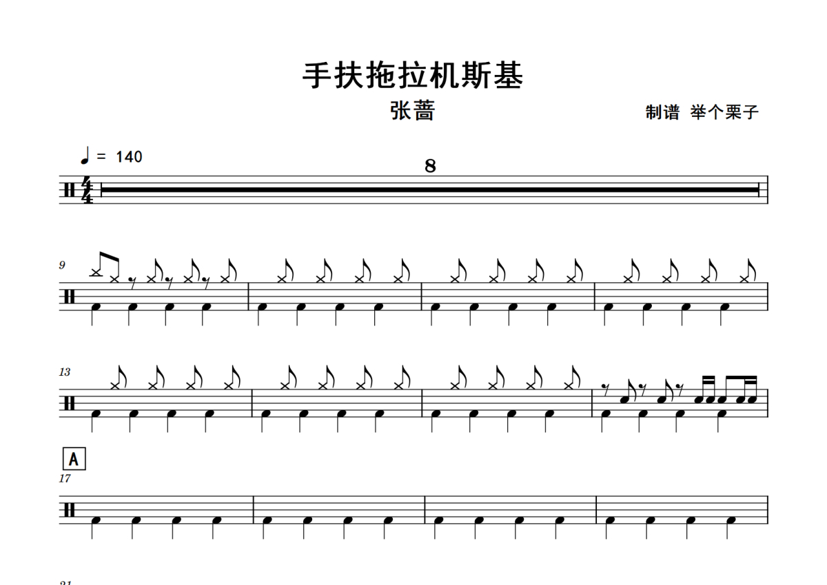 张蔷《手扶拖拉机斯基》鼓谱 - 架子鼓谱