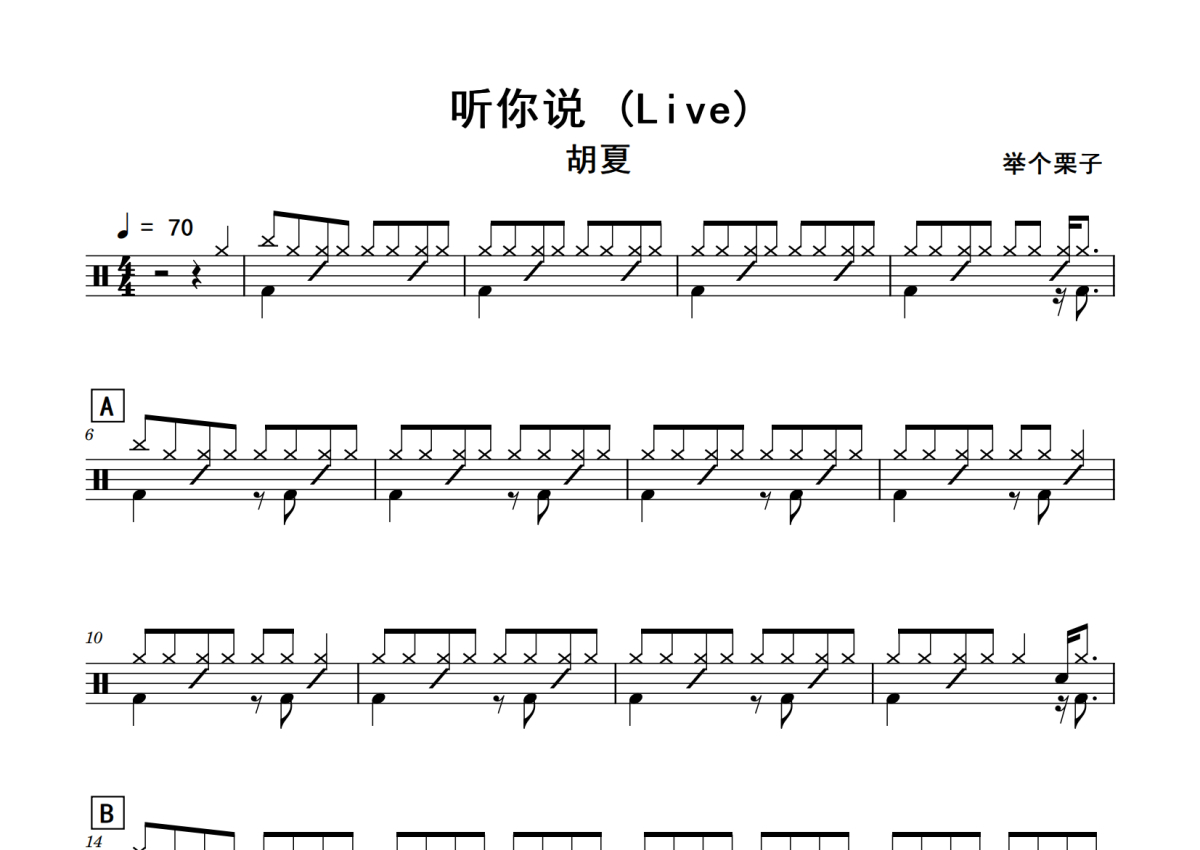 胡夏《听你说》鼓谱 - 架子鼓谱 - Live