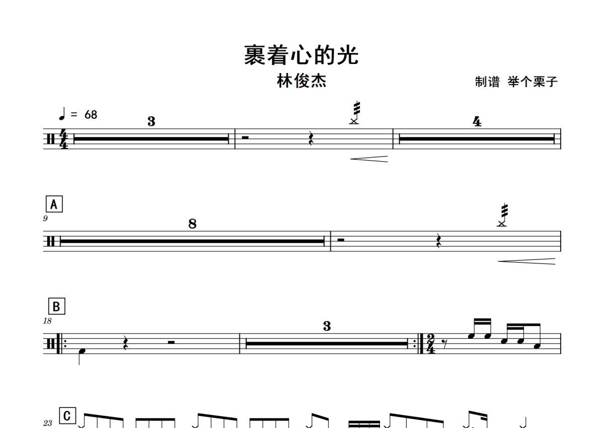 林俊杰《裹着心的光》鼓谱 - 架子鼓谱