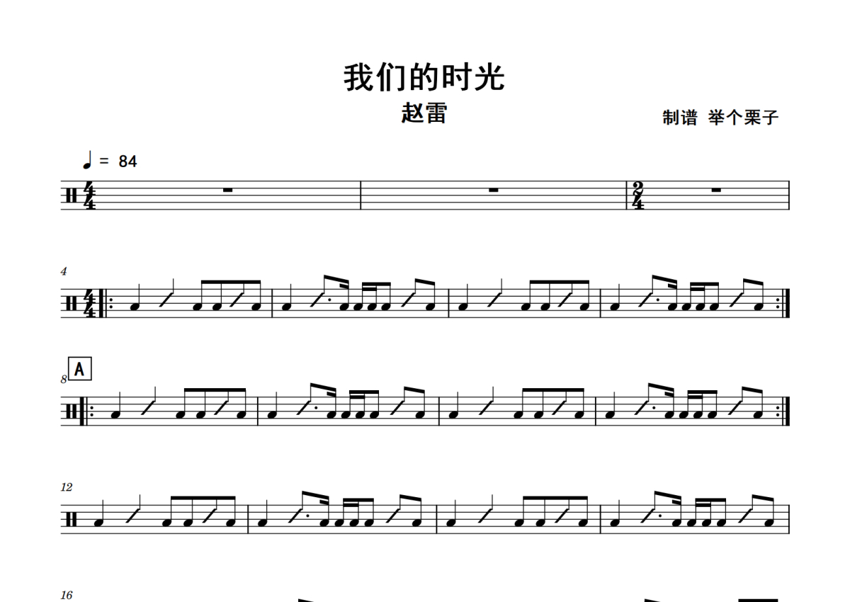 赵雷《我们的时光》鼓谱 - 架子鼓谱