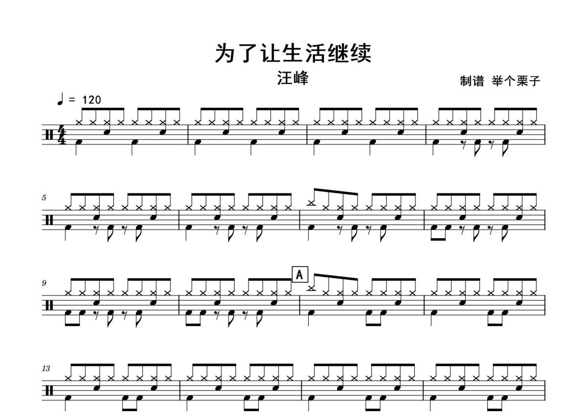汪峰《为了让生活继续》鼓谱 - 架子鼓谱