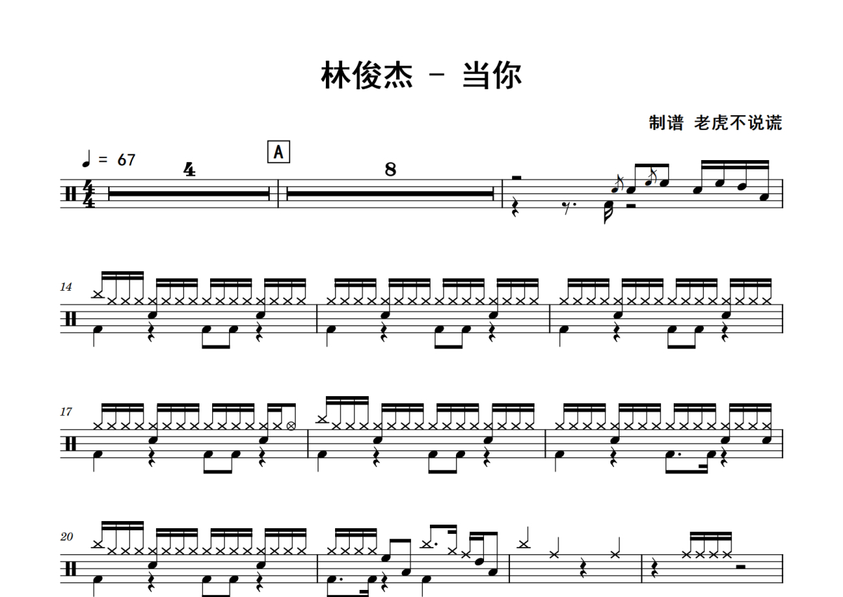 林俊杰《当你》鼓谱 - 架子鼓谱