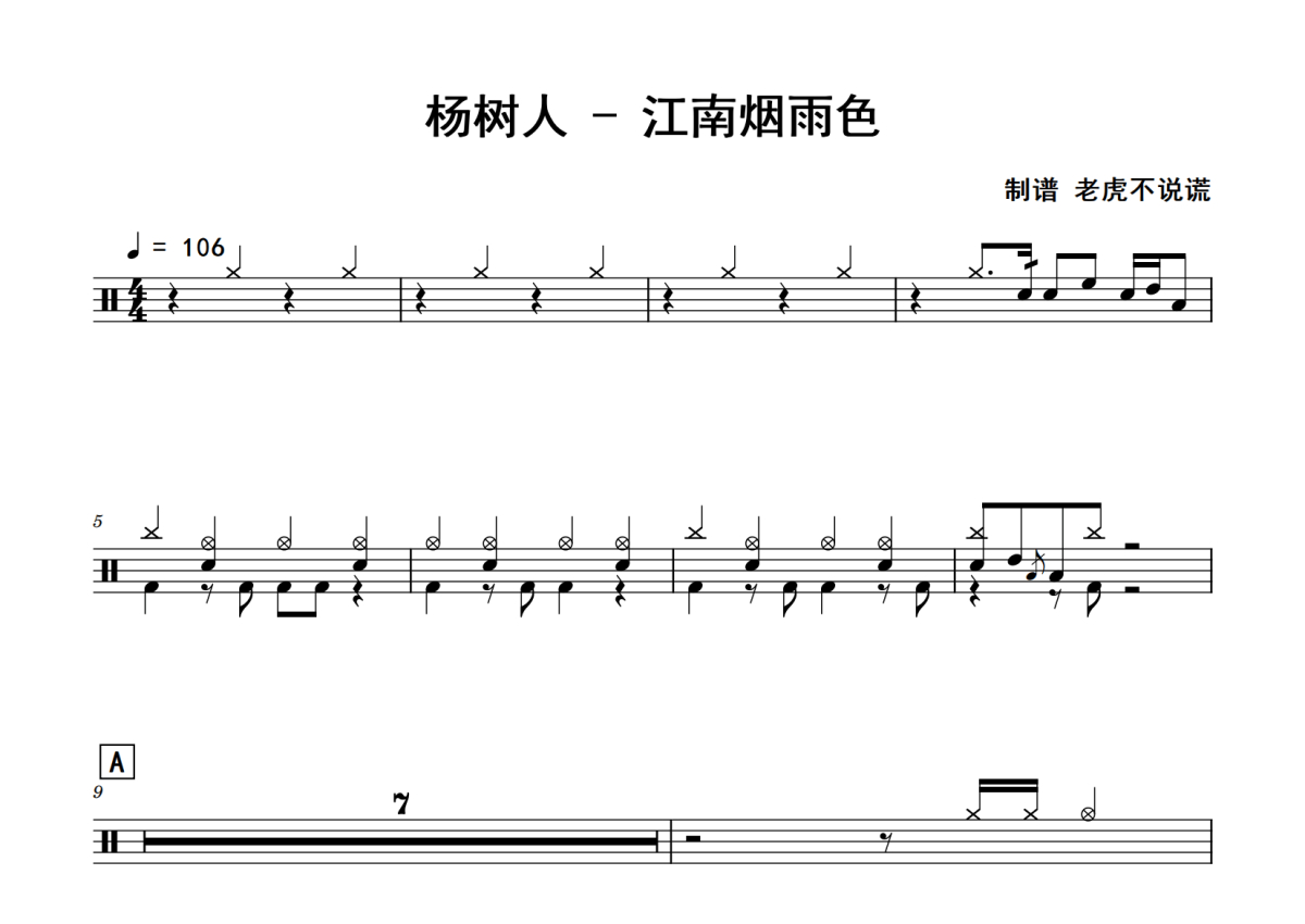 杨树人《江南烟雨色》鼓谱 - 架子鼓谱