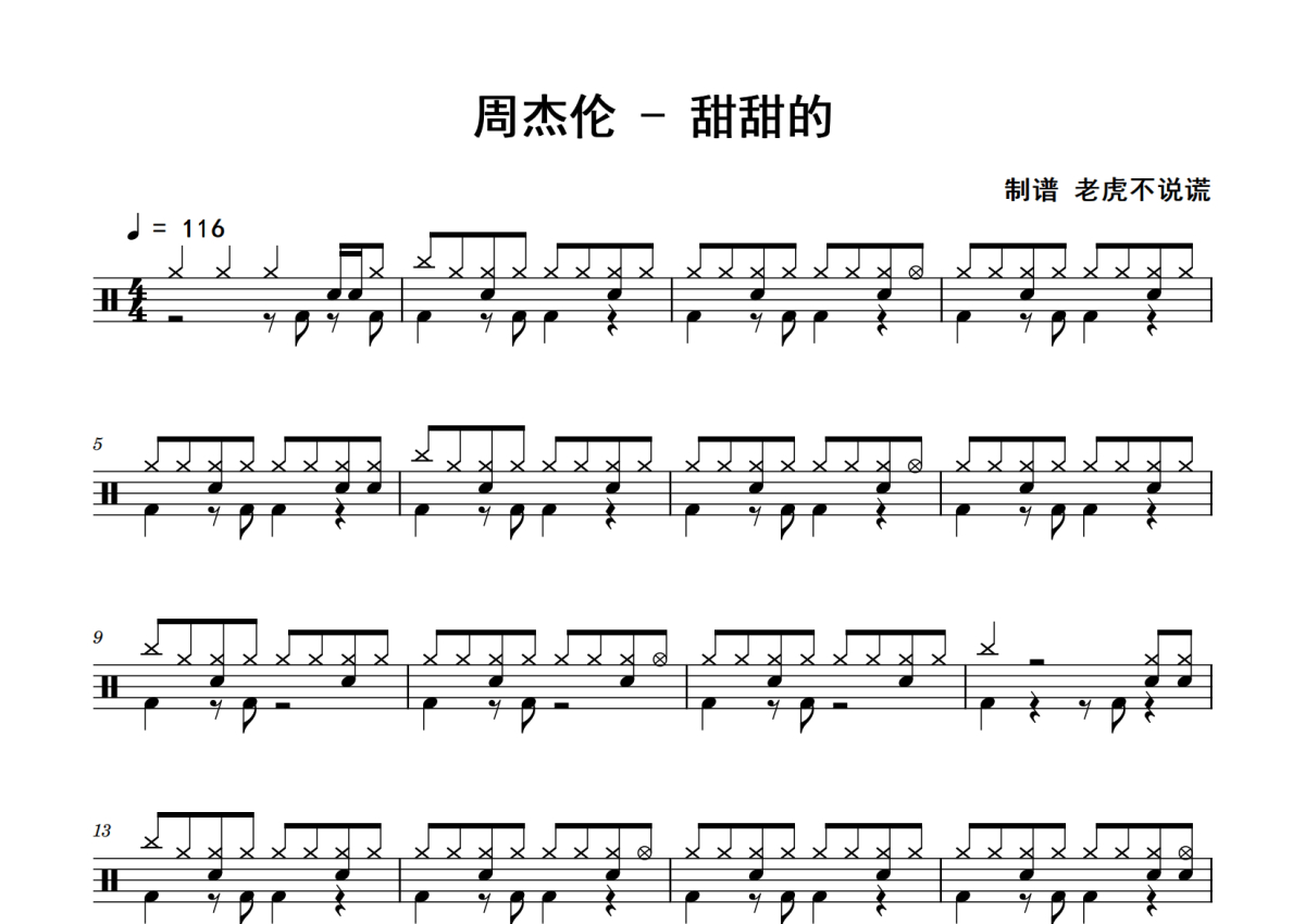 周杰伦《甜甜的》鼓谱 - 架子鼓谱