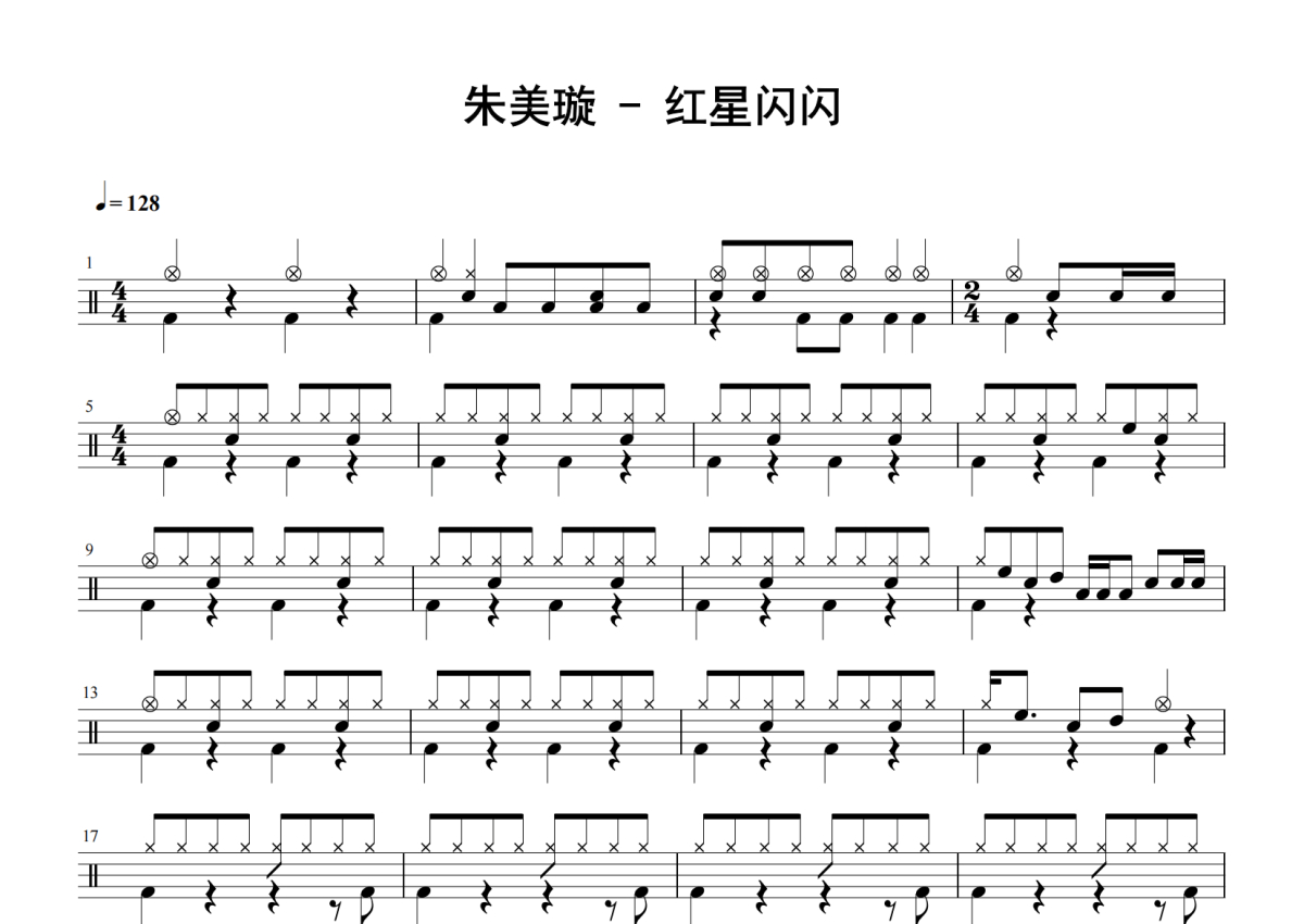 朱美璇《红星闪闪》鼓谱 - 架子鼓谱