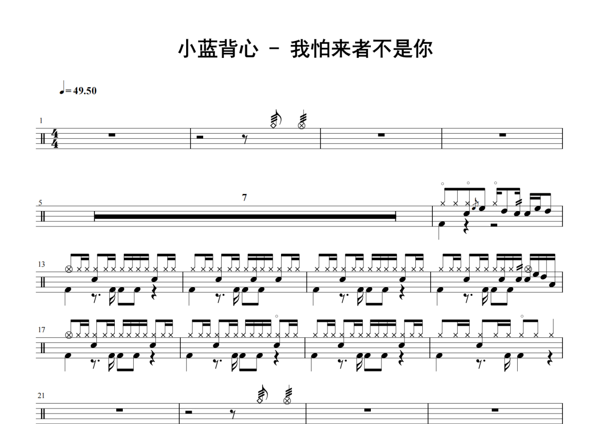小蓝背心《我怕来者不是你》鼓谱 - 架子鼓谱