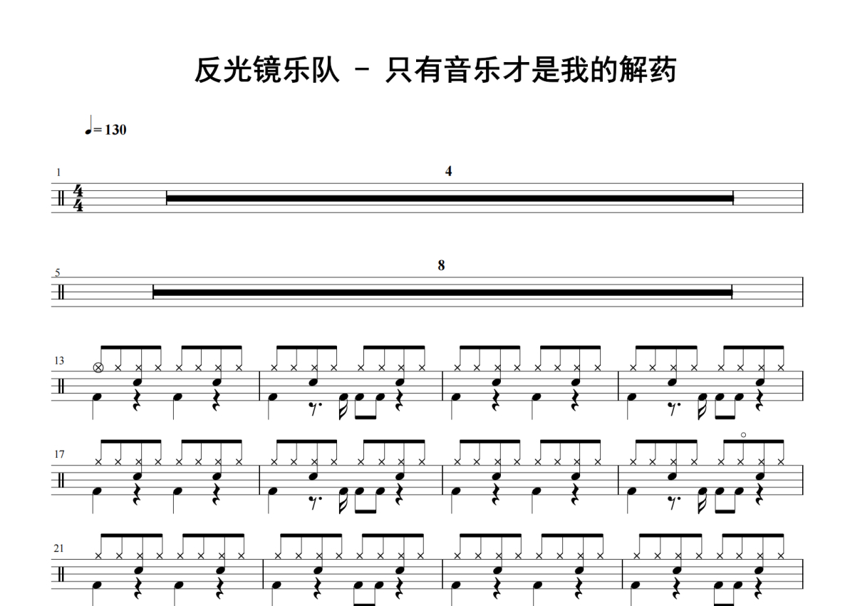 反光镜乐队《只有音乐才是我的解药》鼓谱 - 架子鼓谱