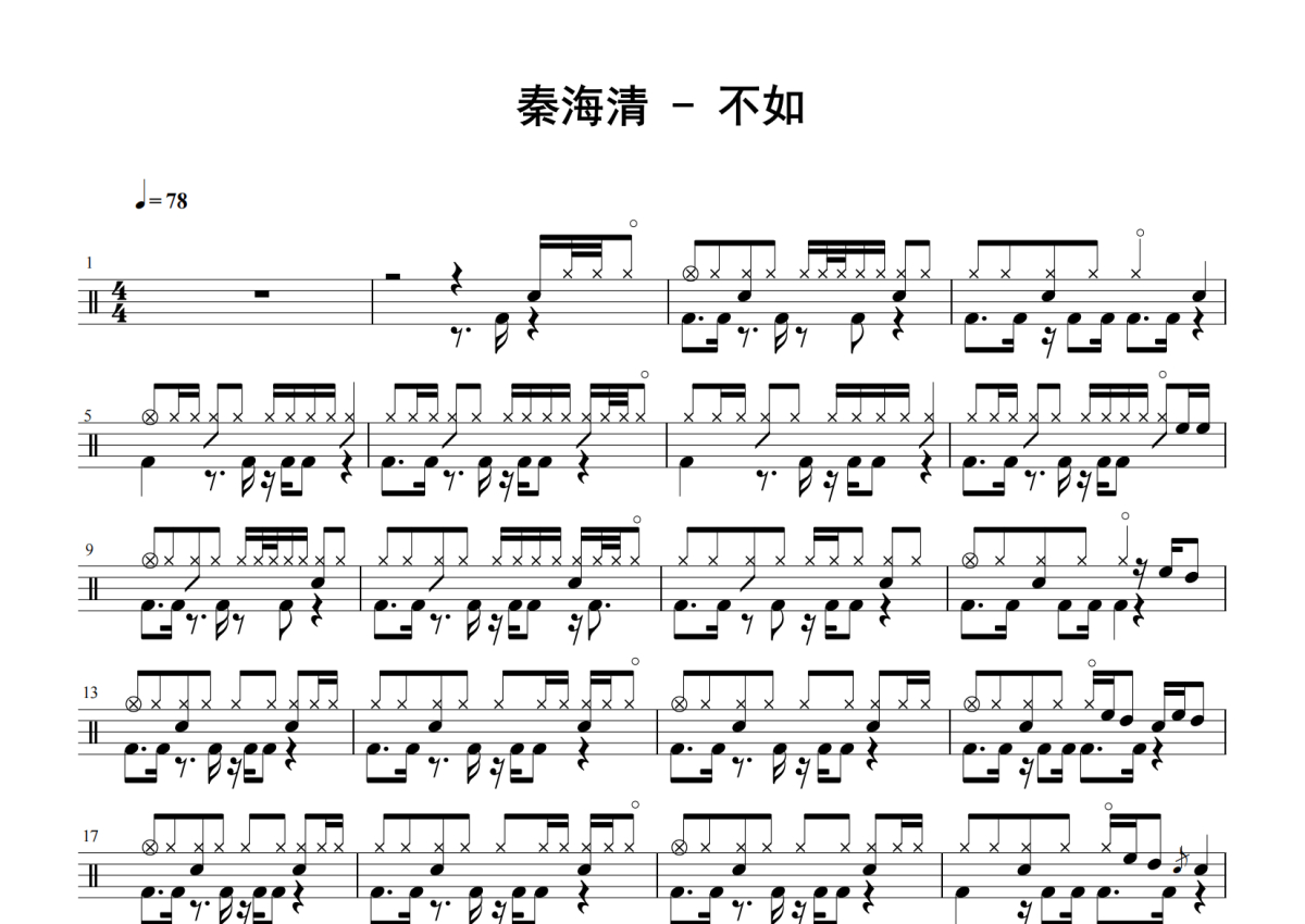秦海清《不如》鼓谱 - 架子鼓谱