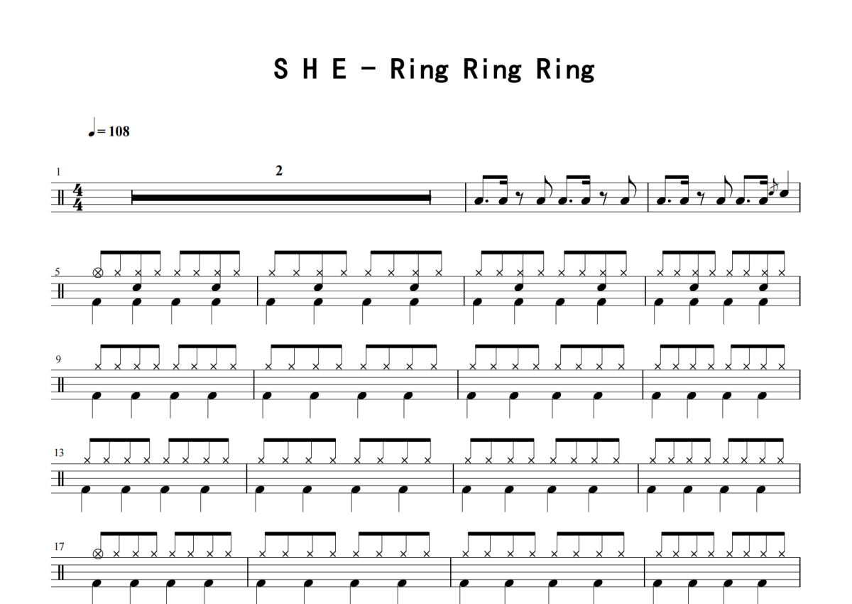 S.H.E《Ring Ring Ring》鼓谱 - 架子鼓谱