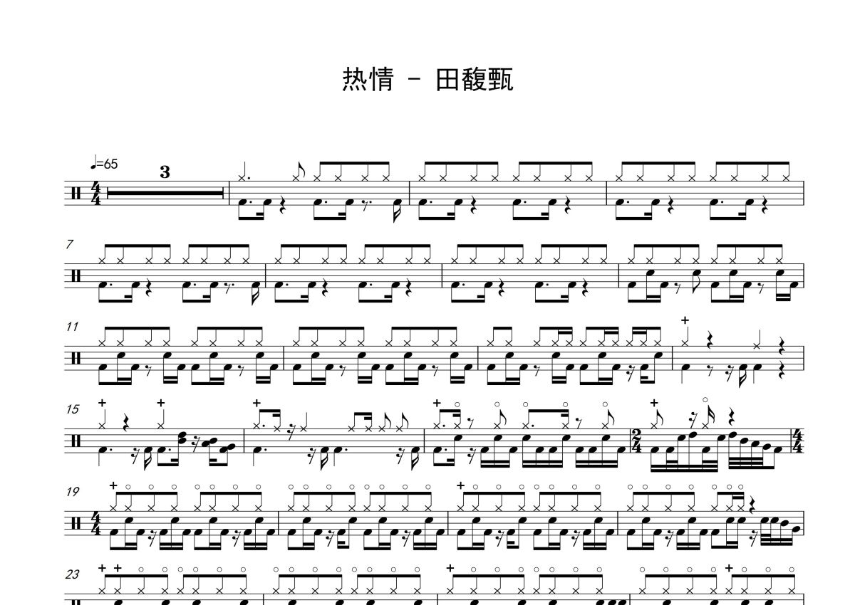 田馥甄《热情》鼓谱 - 架子鼓谱