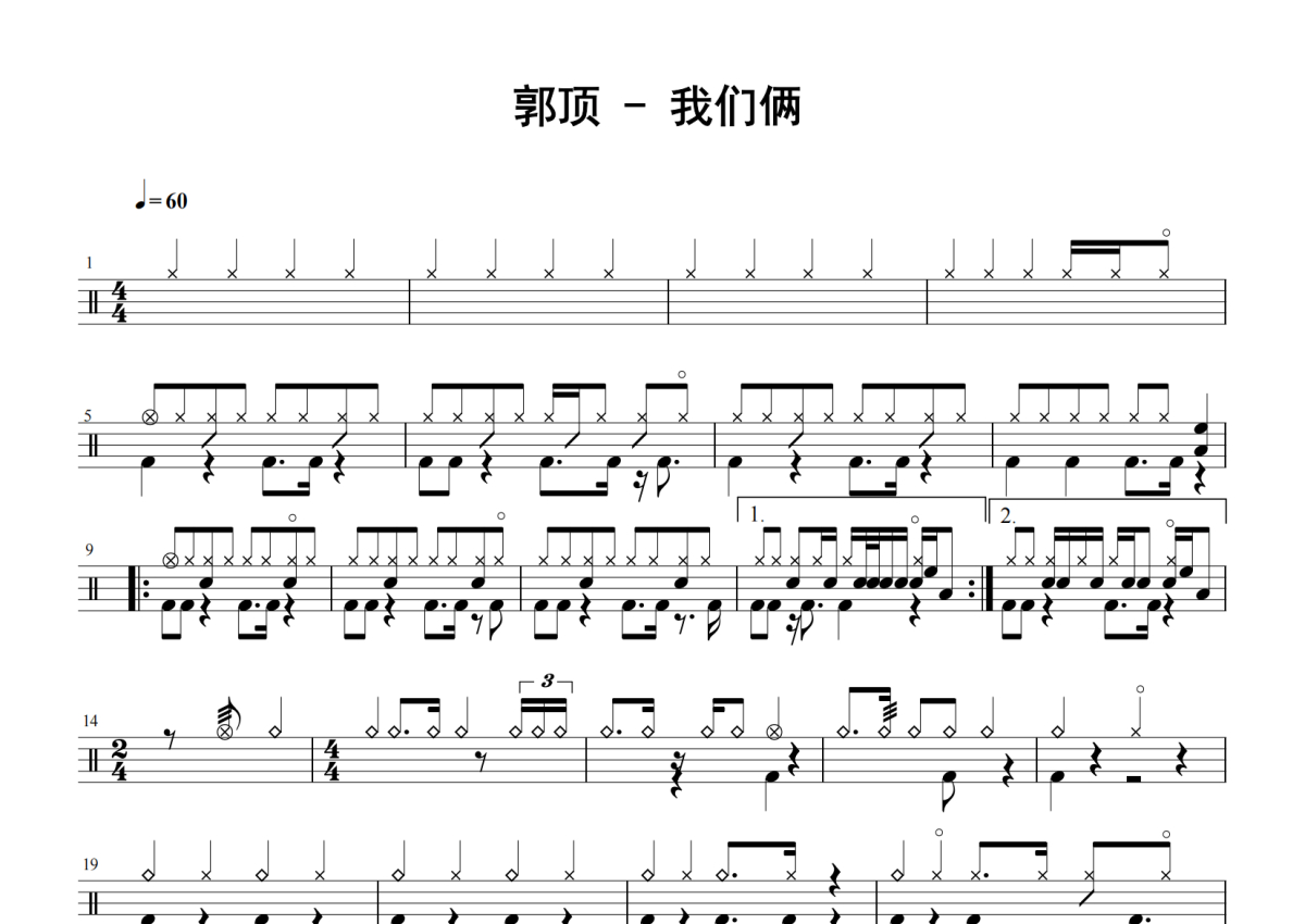 郭顶《我们俩》鼓谱 - 架子鼓谱