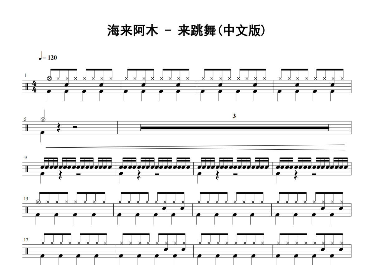 海来阿木《来跳舞》鼓谱 - 架子鼓谱 - 中文版