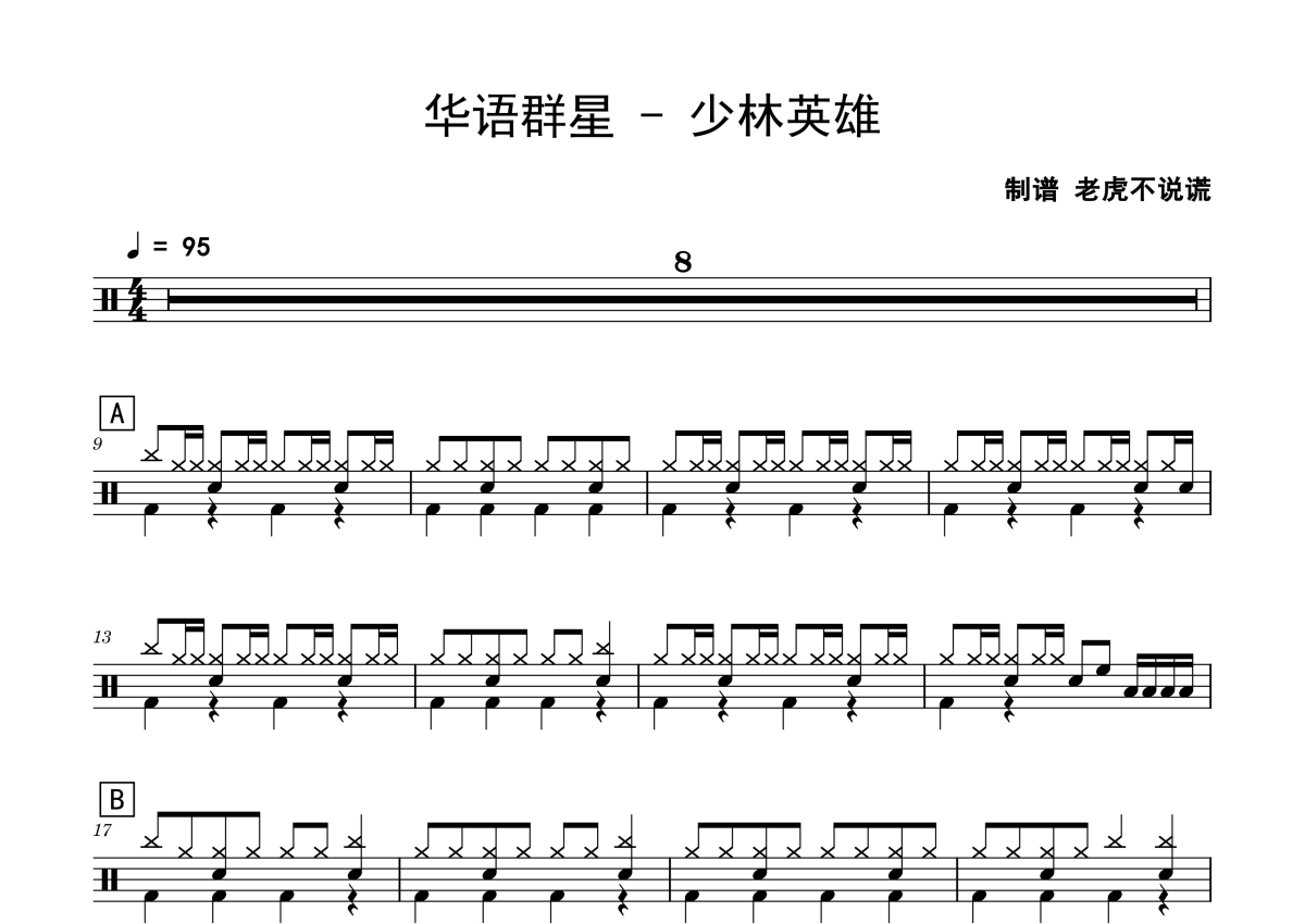 华语群星《少林英雄》鼓谱 - 架子鼓谱