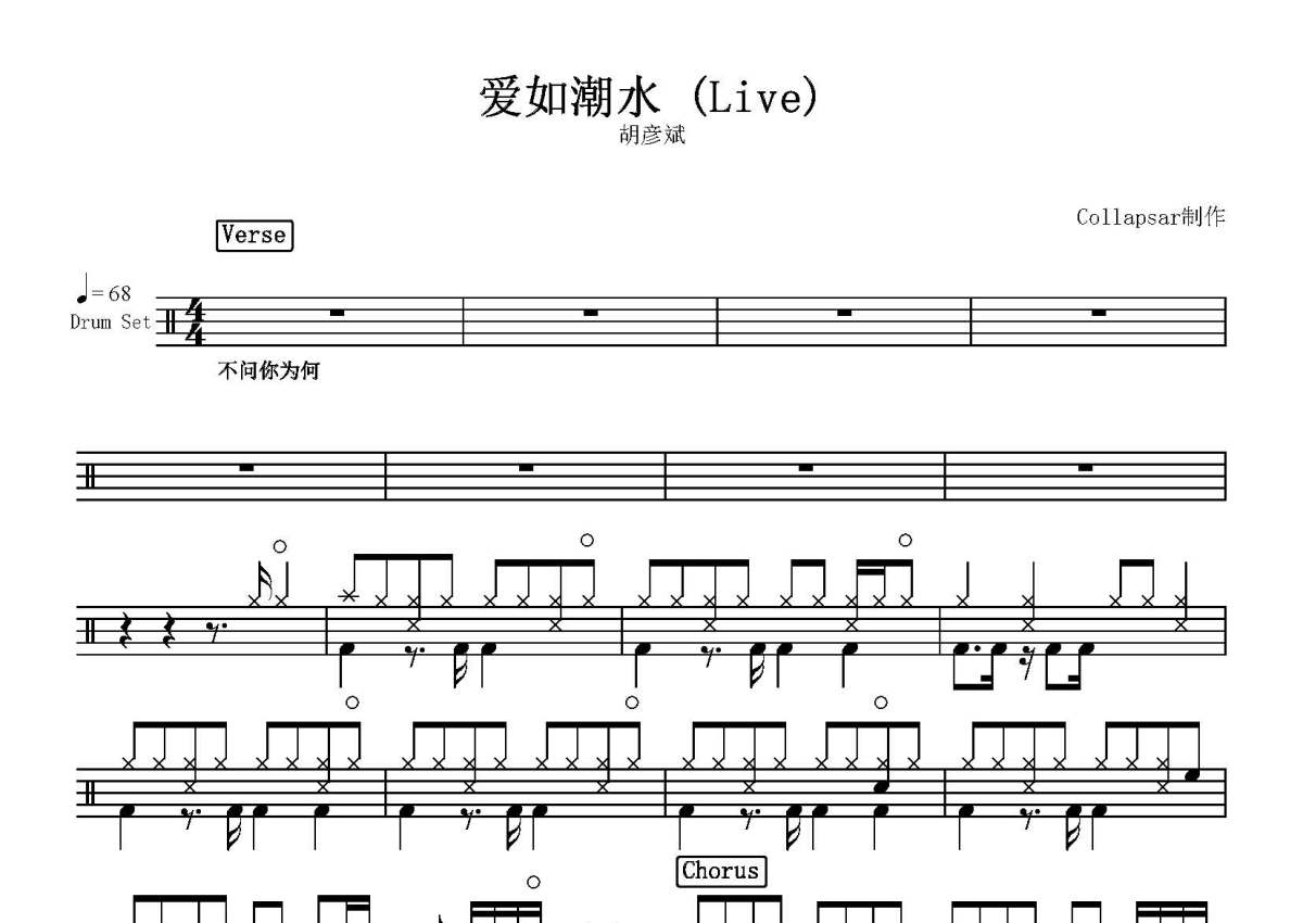 胡彦斌《爱如潮水》鼓谱 - 架子鼓谱