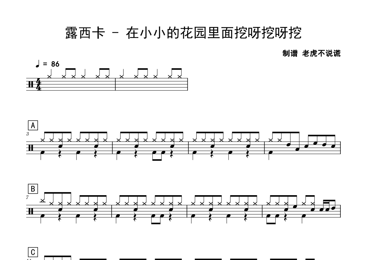 露西卡《在小小的花园里面挖呀挖呀挖》鼓谱 - 架子鼓谱