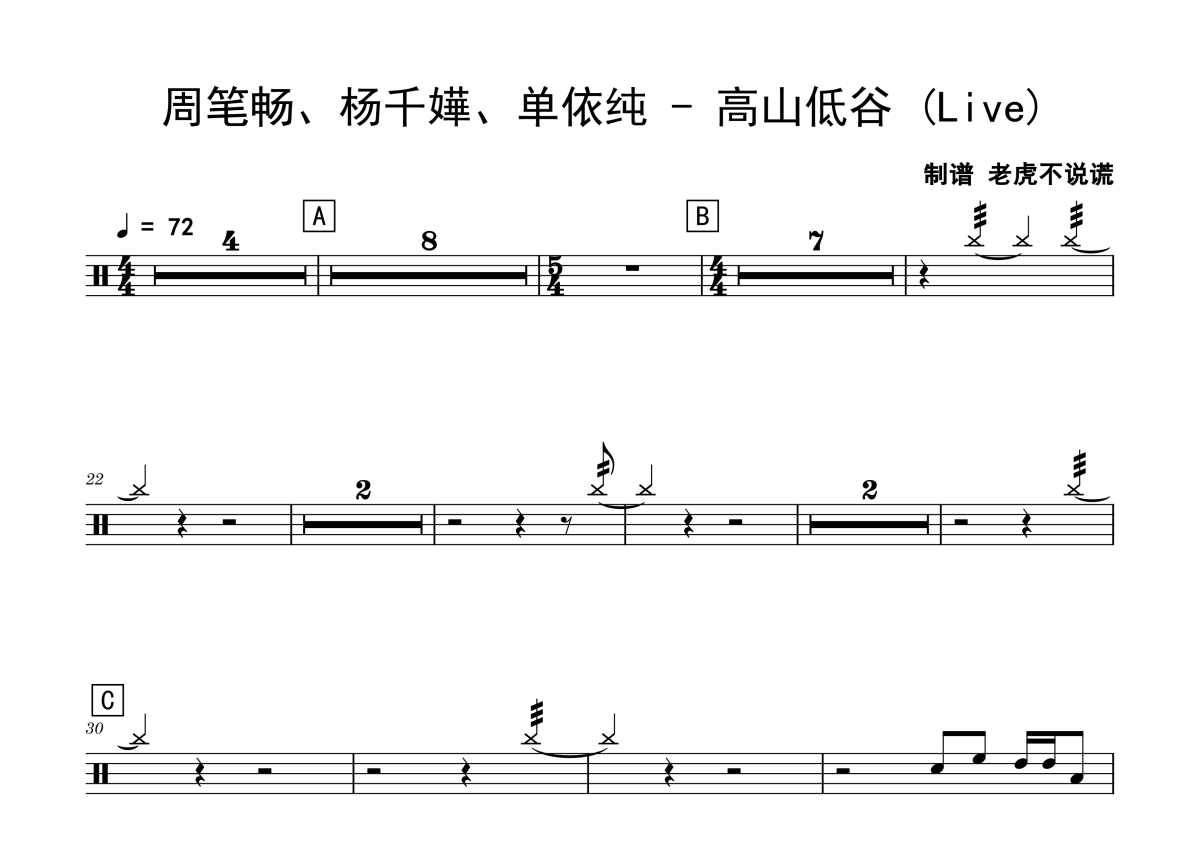 周笔畅/杨千嬅/单依纯《高山低谷》鼓谱 - 架子鼓谱 - (Live)