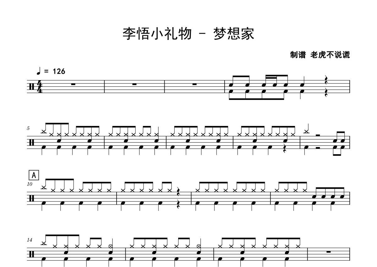 李悟小礼物《梦想家》鼓谱 - 架子鼓谱