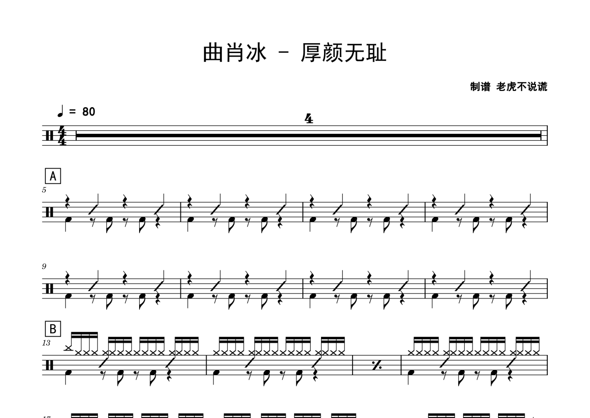 曲肖冰《厚颜无耻》鼓谱 - 架子鼓谱
