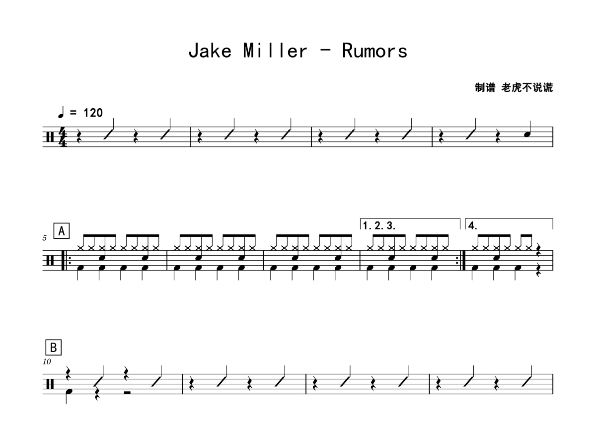 Jake Miller《Rumors》鼓谱 - 架子鼓谱