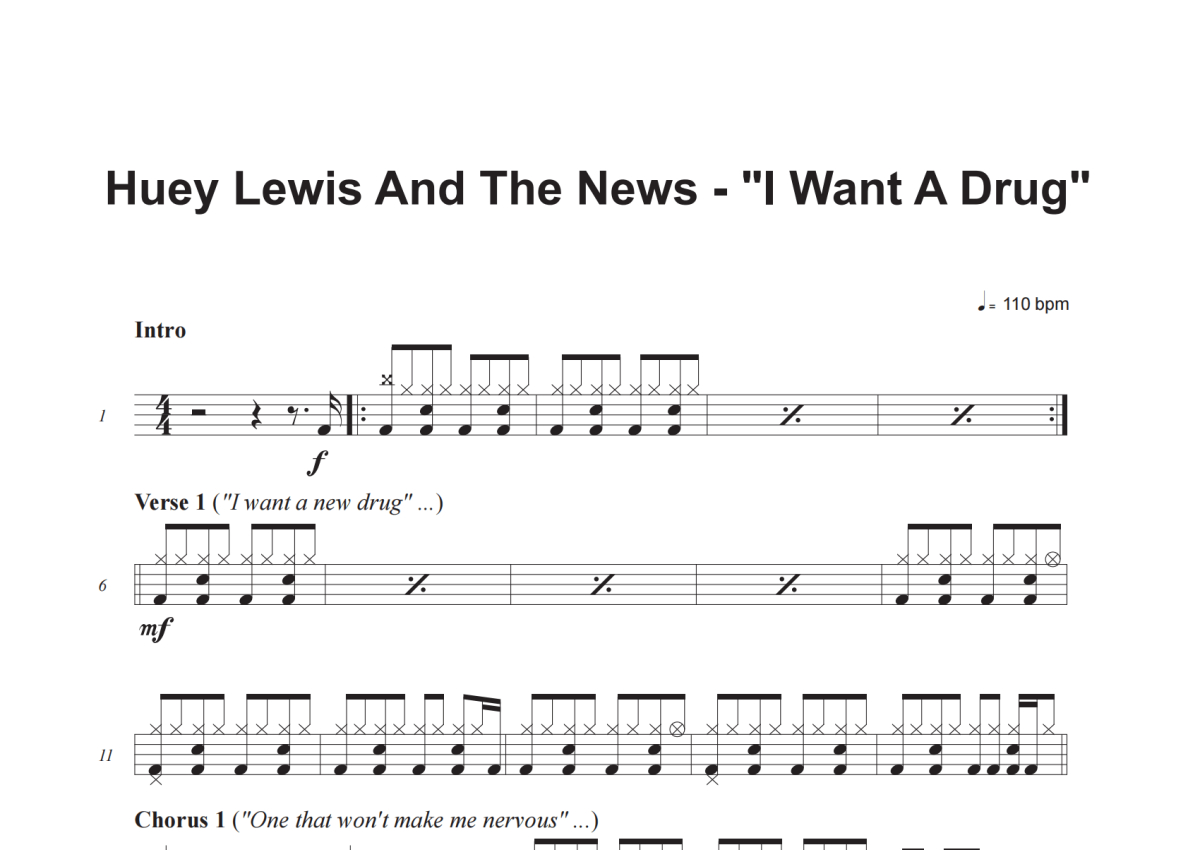 Huey Lewis And The News《I Want A Drug》鼓谱 - 架子鼓谱