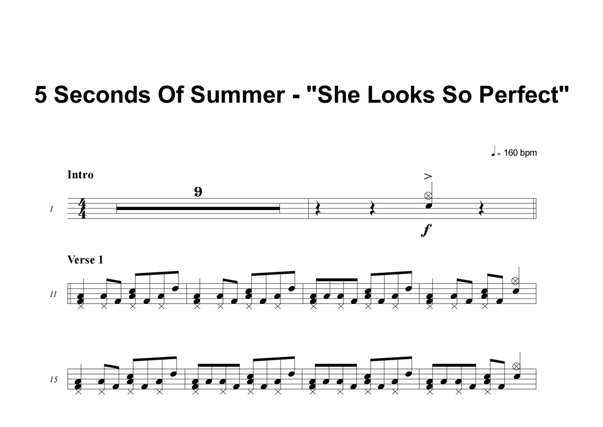 5 Seconds Of Summer《She Looks So Perfect》鼓谱 - 架子鼓谱