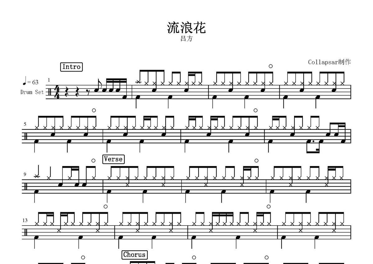 吕方《流浪花》鼓谱 - 架子鼓谱
