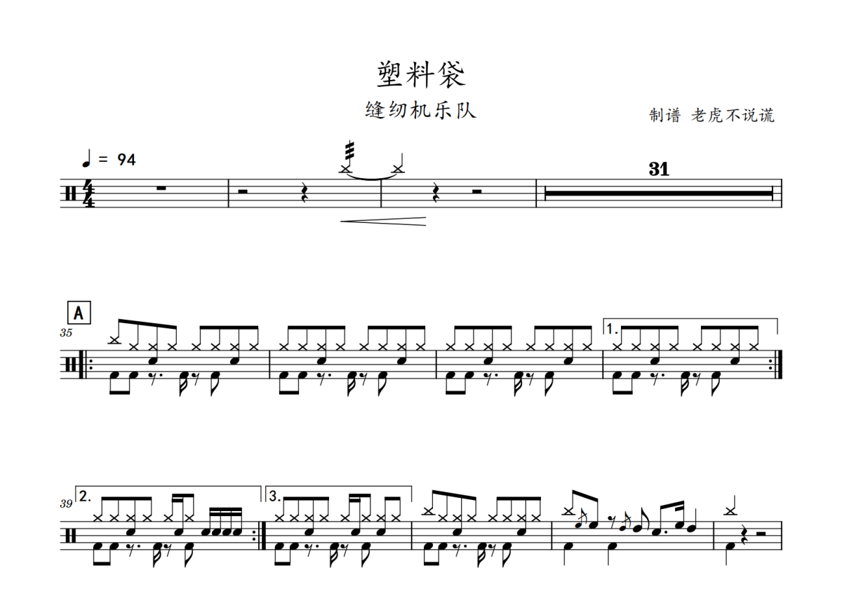 缝纫机乐队《塑料袋》鼓谱 - 架子鼓谱