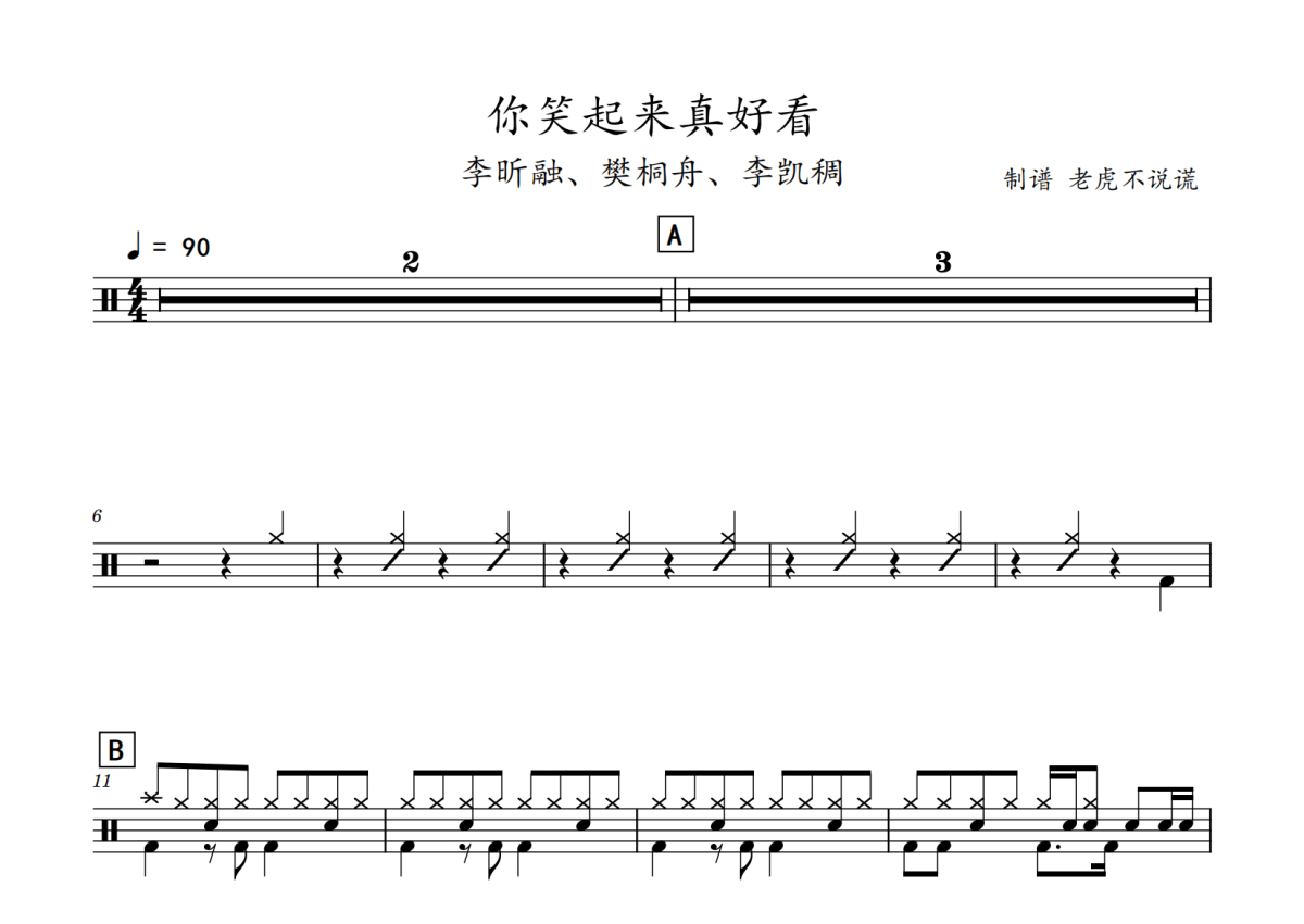 李昕融、樊桐舟、李凯稠《你笑起来真好看》鼓谱 - 架子鼓谱
