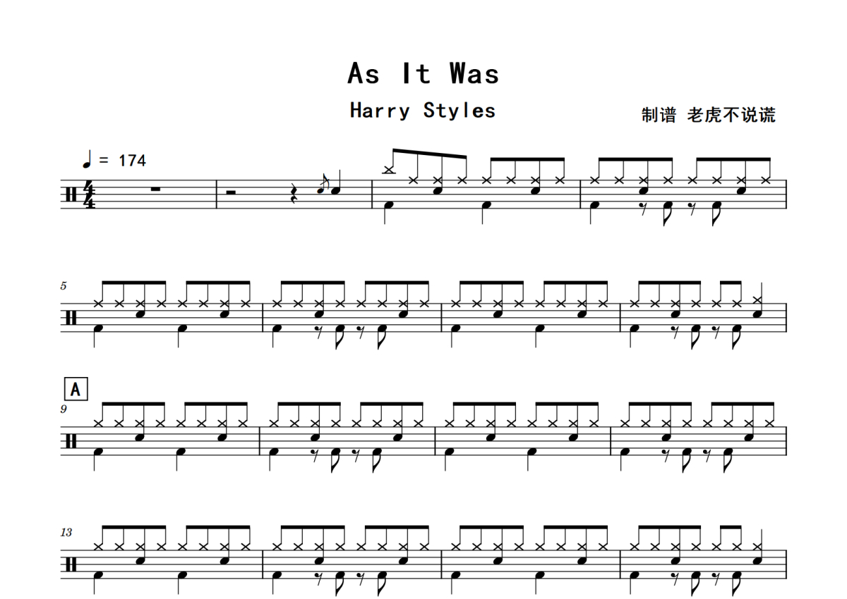 Harry Styles《As It Was》鼓谱 - 架子鼓谱