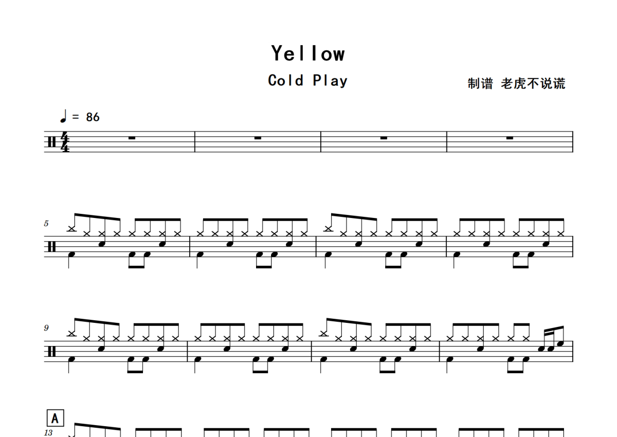 Coldplay《Yellow》鼓谱 - 架子鼓谱