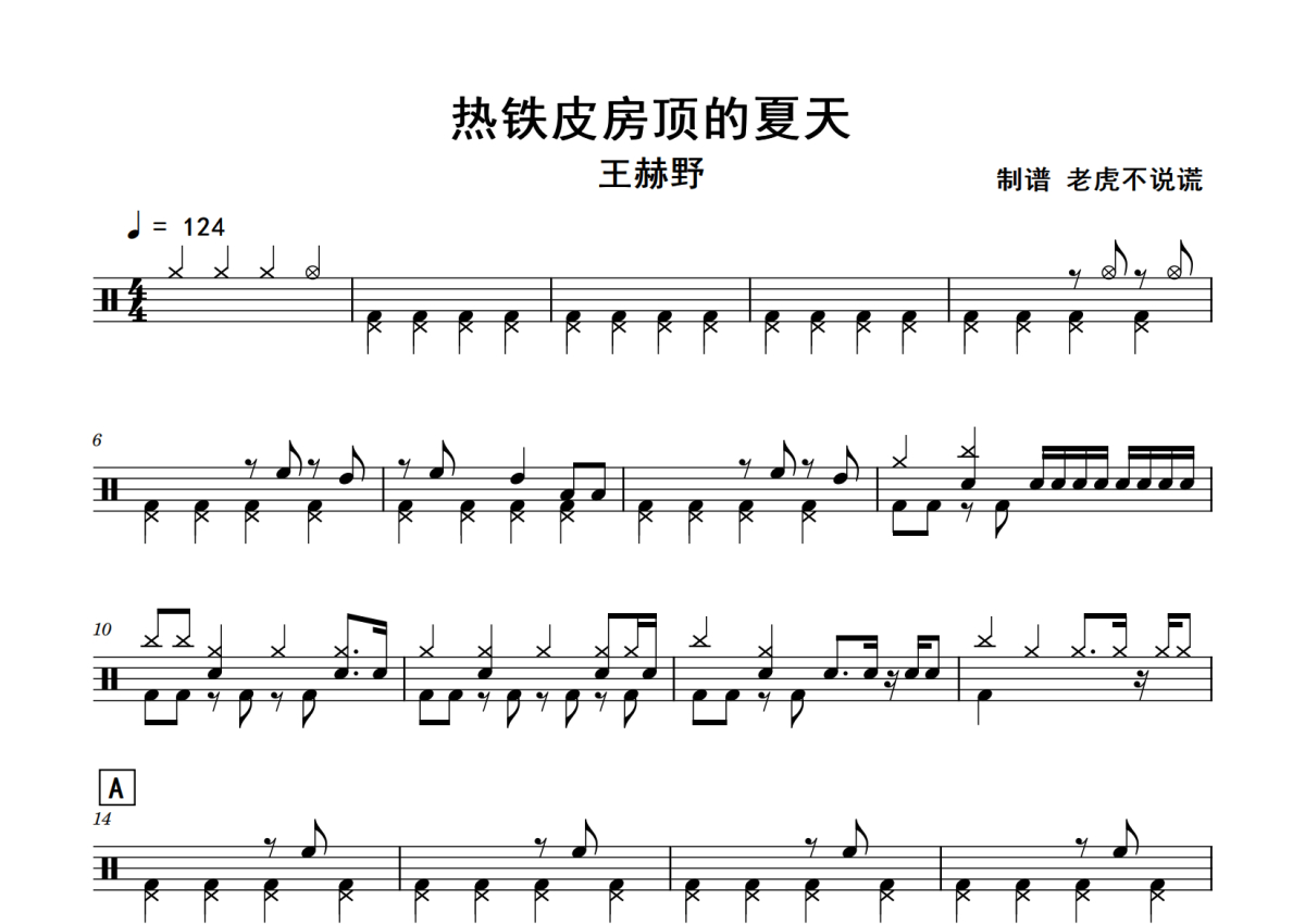王赫野《热铁皮房顶的夏天》鼓谱 - 架子鼓谱