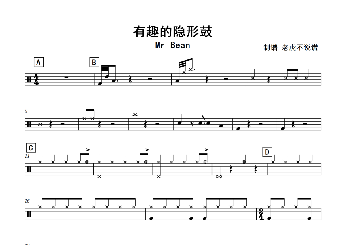 憨豆先生《有趣的隐形鼓》鼓谱 - 架子鼓谱
