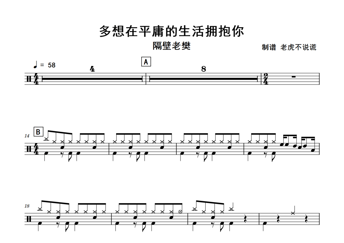 隔壁老樊《多想在平庸的生活拥抱你》鼓谱 - 架子鼓谱