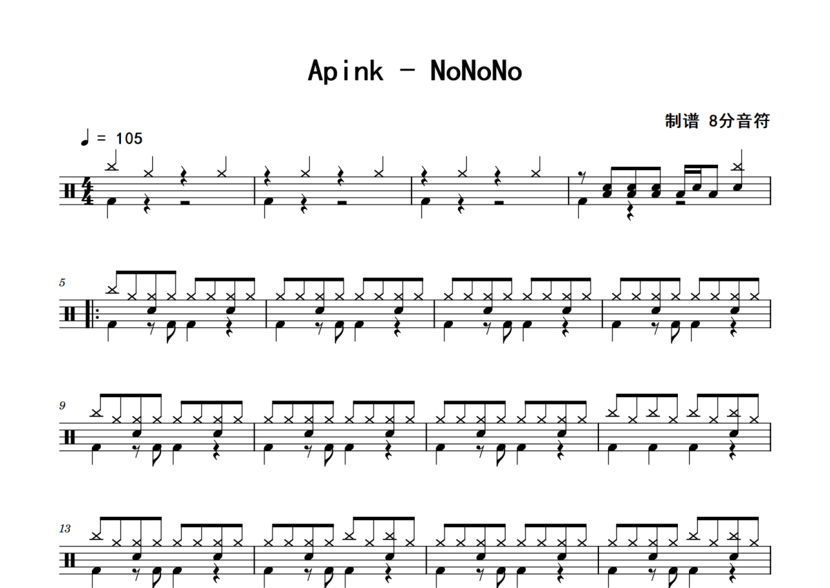 Apink《NoNoNo》鼓谱 - 架子鼓谱