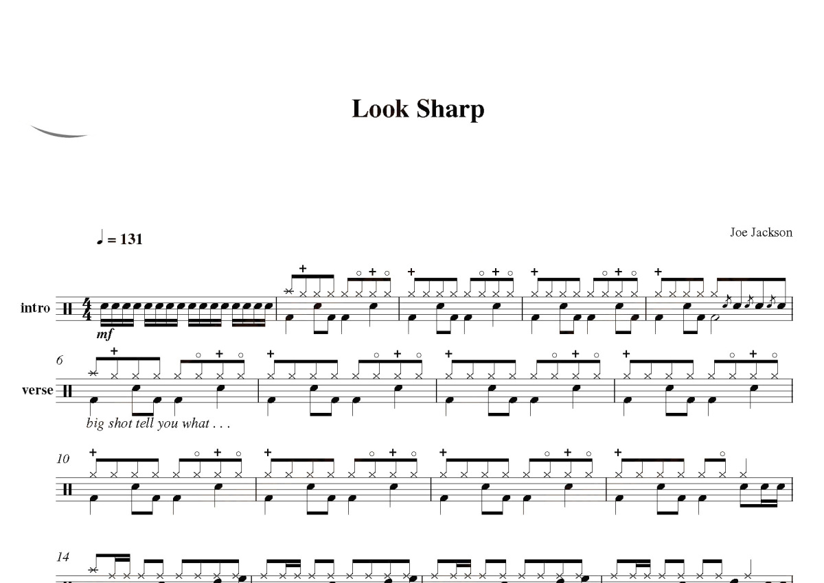 《look sharp》是Joe Jackson演唱的一首歌曲,这份鼓谱共有两张高清图谱,图谱由 @打鼓谱 编配上传,图谱使用五线谱编配,使用这份look sharp架子鼓谱,你将能够轻松地敲打出这首Joe Jackson的look sharp,快来尝试吧。快看!是1979年发行的乔•杰克逊的首张专辑。该专辑收录了杰克逊最著名的歌曲之一,“她真的和他一起出去吗? ”,以及主打曲目“看看夏普”,“周日报纸”,“更多时间”和“愚人节”。