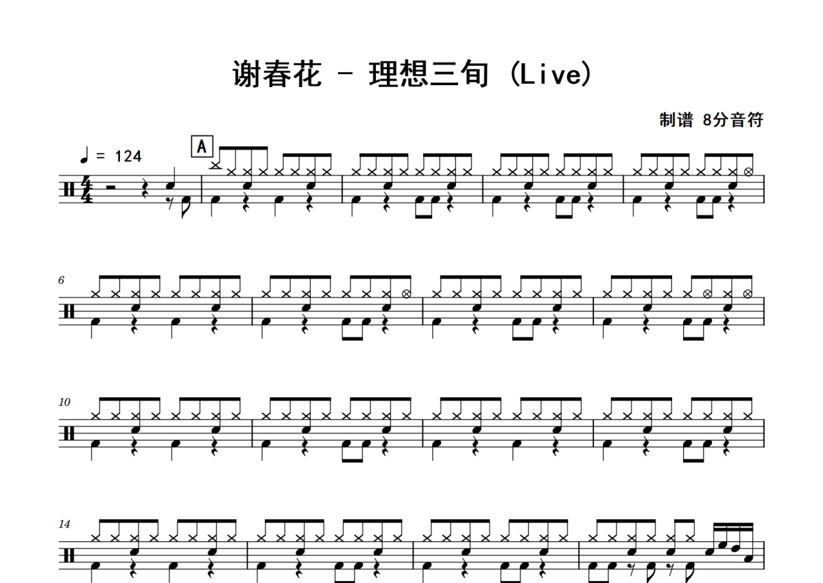 谢春花《理想三旬》鼓谱 - 架子鼓谱 - Live