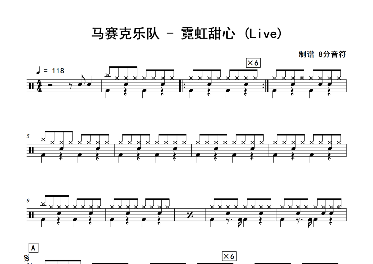 马赛克乐队《霓虹甜心》鼓谱 - 架子鼓谱 - Live