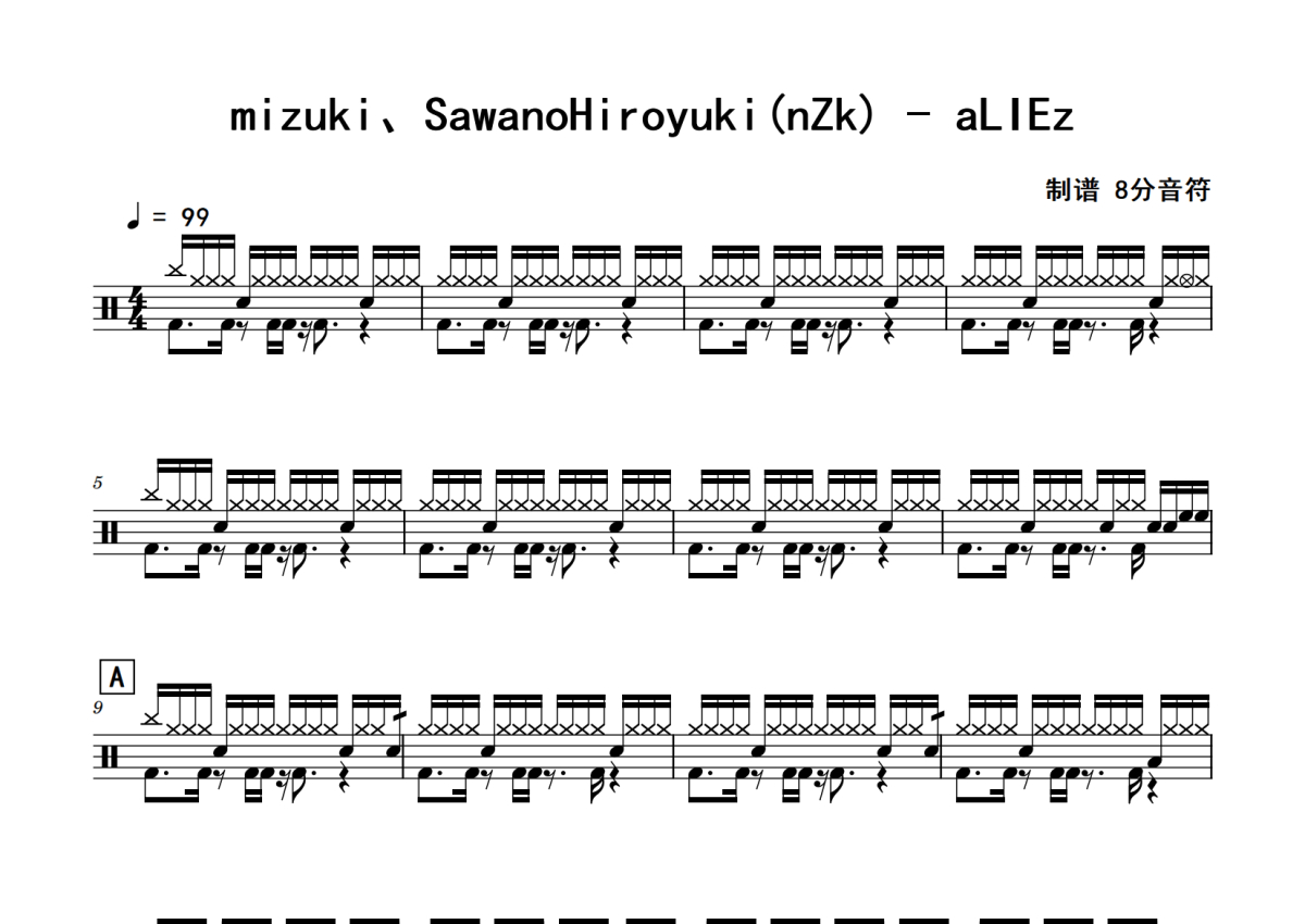 泽野弘之《aLIEz》鼓谱 - 架子鼓谱