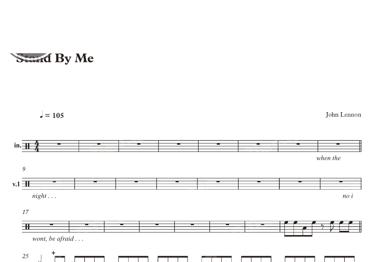John Lennon《Stand By Me》鼓谱 - 架子鼓谱
