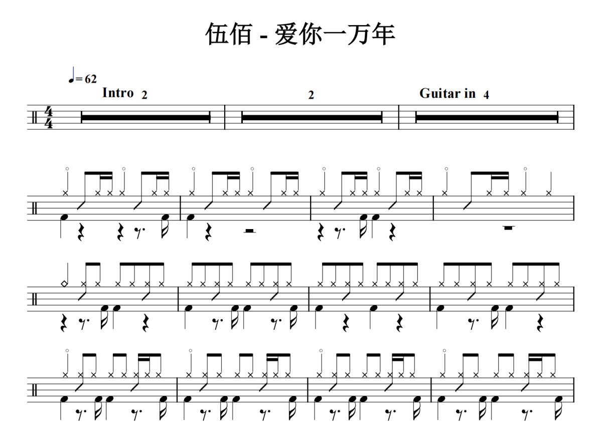 伍佰《爱你一万年》鼓谱 - 架子鼓谱