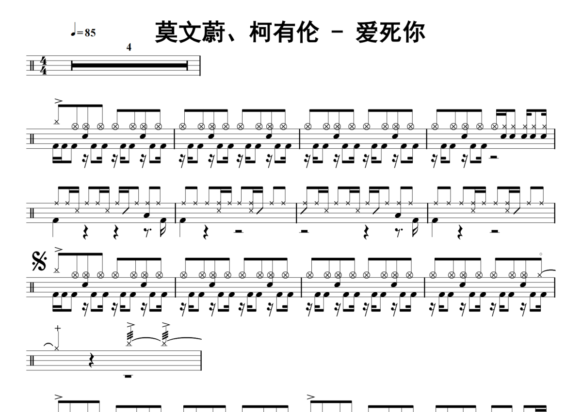 莫文蔚、柯有伦《爱死你》鼓谱 - 架子鼓谱