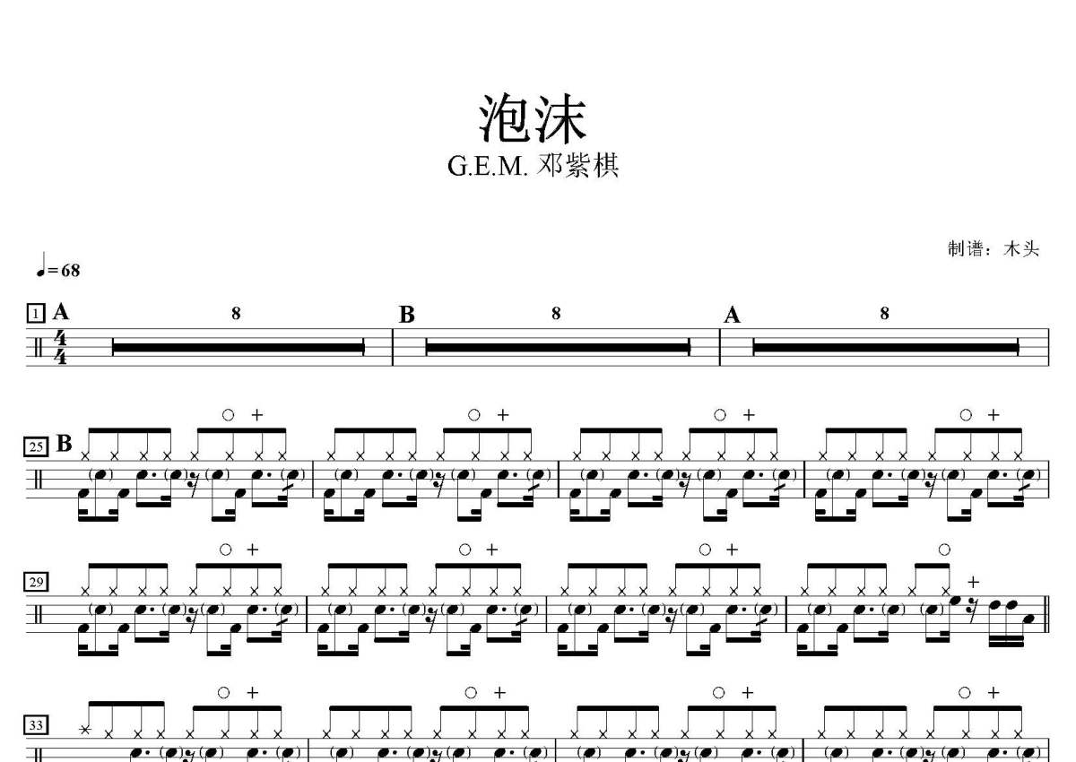 G.E.M. 邓紫棋《泡沫》鼓谱 - 架子鼓谱