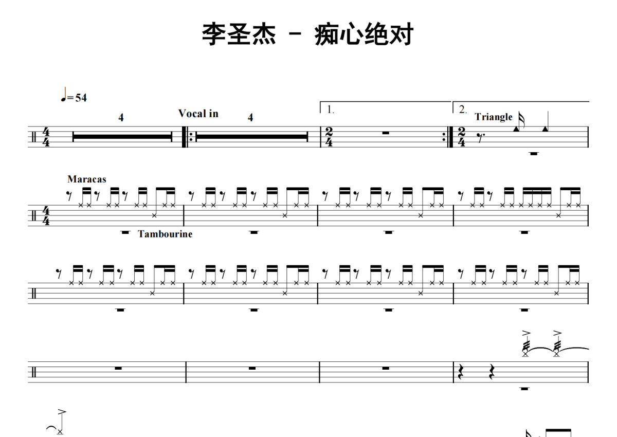 李圣杰《痴心绝对》鼓谱 - 架子鼓谱