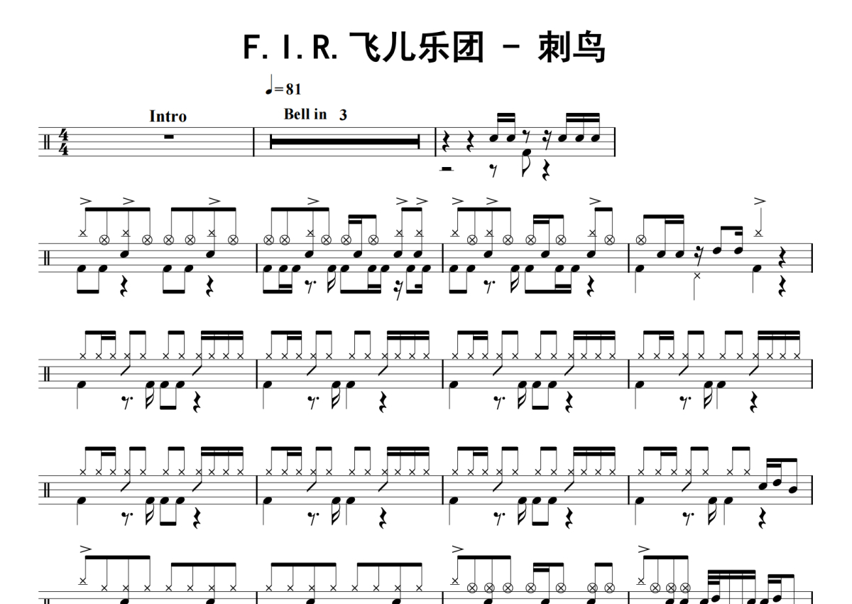 F.I.R.飞儿乐团《刺鸟》鼓谱 - 架子鼓谱